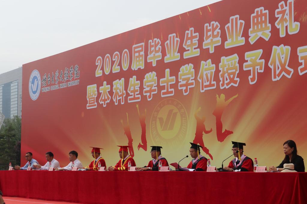 6月12日,烟台大学文经学院2020届毕业生毕业典礼暨本科生学士学位授予仪式隆重举行。学院董事长辛军,执行董事曹世民,院领导于光辉、辛连军、王宪杰、尤敬法、莫红菊、张中华,各系及职能部门负责人出席典礼。本次毕业典礼由党委书记唐家弘主持。