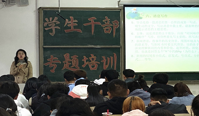 为提升学生新闻采编、摄影水平。10月30日,经济系于一教119教室举行学生干部专题培训活动,经济系党支部书记杨帆担任主讲。