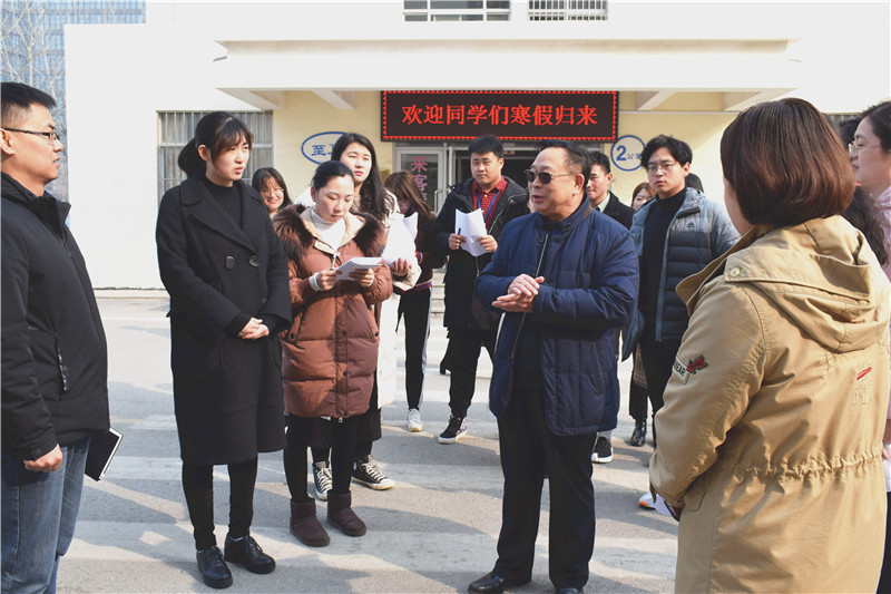 新学期伊始,为优化宿舍环境,进一步加强学生精神文明建设,及时发现和消除事故隐患,坚持落实安全措施,3月1日,外语系党总支书记张廷国,外语系团总支书记、学生会指导老师温少斐,辅导员王君、卜小凡、全体班主任及部分学生干部对学生宿舍楼进行了走访及卫生检查。