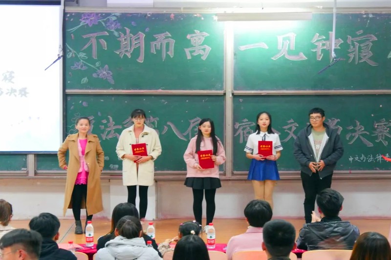 11月9日晚,文法系“不期而寓,一见钟寝”第八届宿舍文化节决赛于二教115教室举行,文法系辅导员梁丹、王美云、辛佩恕,18级各班班主任教师李泓纲、赵改霞、吕超、姜晖担任评委,学生会主席团、各部部长及18级学生到场观看。