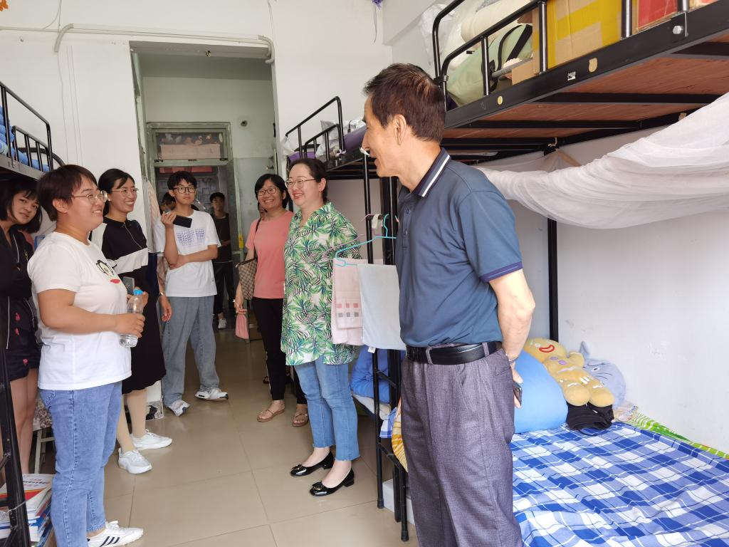 为全方位掌握毕业生在校情况,进一步落实毕业生相关工作部署,保障毕业生安全、平稳离校,6月7日上午10点,食品与生物工程学院院长金海珠、党总支副书记赵蓓、辅导员于小康以及班主任姜倩倩、韩明月、王晓君、秦红玉、王志宏等共同走访毕业生宿舍。
