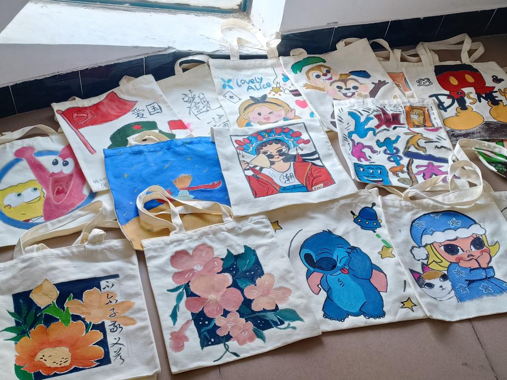 活动过程中,参赛人员自带纸板用于调色和平铺,学生会宣传部提供颜料和画笔。帆布包绘制完成后交由宣传部收回评奖,并配合网络技术部进行线上展示。经过紧张激烈的角逐,本次活动选出一等奖两名,二等奖四名,三等奖八名,颁发证书作为奖励。赛后优秀作品将交由团总支科技实践部以2022年优秀社会实践团队的名义捐给贫困地区的儿童。