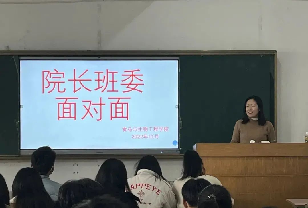 11月17日,食品与生物工程学院召开“院长面对面”暨学生干部座谈会。参加本次座谈会的有食品与生物工程学院院长金海珠、教务办公室主任宫志娴以及各班班长、团支书、学习委员。