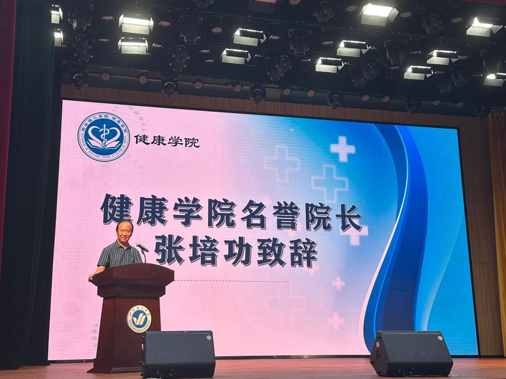 9月14日晚,健康学院2025级新生见面会在综合楼一楼报告厅举行。健康学院名誉院长张培功、院长冯卫红、党总支书记刘大华、副院长李雪与全体教师以及2025级全体新生参加。